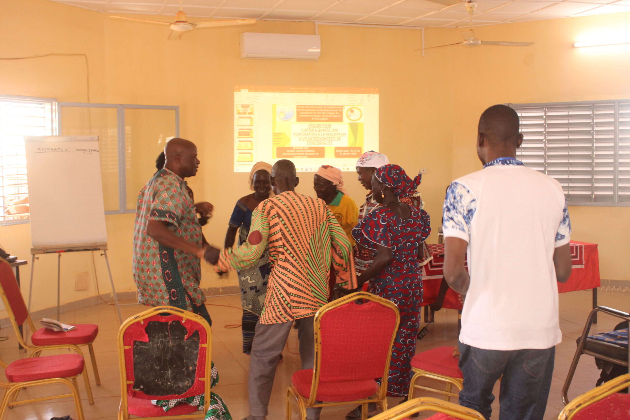 Dans le cadre du « Projet de renforcement de l’adoption des bonnes pratiques agroécologiques par les populations de cinq (05) villages des communes de Kayao, de Komki-Ipala et de Sourougbila », soutenu par Secours Catholique Caritas France, la Coopérative Buud Nooma de Yaoghin a été identifié pour la réalisation de l’autodiagnostic de leur coopérative du 27 au 29 janvier 2025 , animée par un consultant  du cabinet Management-Intermédiation-Conseils-Organisations-Services,  Monsieur Michel COMPAORE.  Cette session avait pour but d’accompagner les membres de ladite coopérative à analyser plusieurs aspects de leur fonctionnement afin d’améliorer leur impact et leur viabilité à long terme. Ce travail a permis de poser un regard critique et constructif sur la mission, la vision, la gouvernance, la gestion et les produits de la coopérative.