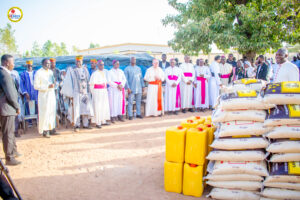 Au-delà du soutien moral et spirituel, la délégation ne s’est pas rendue les mains vides. Des vivres ont été distribués aux familles déplacées, une aide précieuse dans un contexte de précarité grandissante. Ce geste témoigne de l’engagement de l’Église catholique en faveur des plus vulnérables, conformément à sa mission de charité et de fraternité.